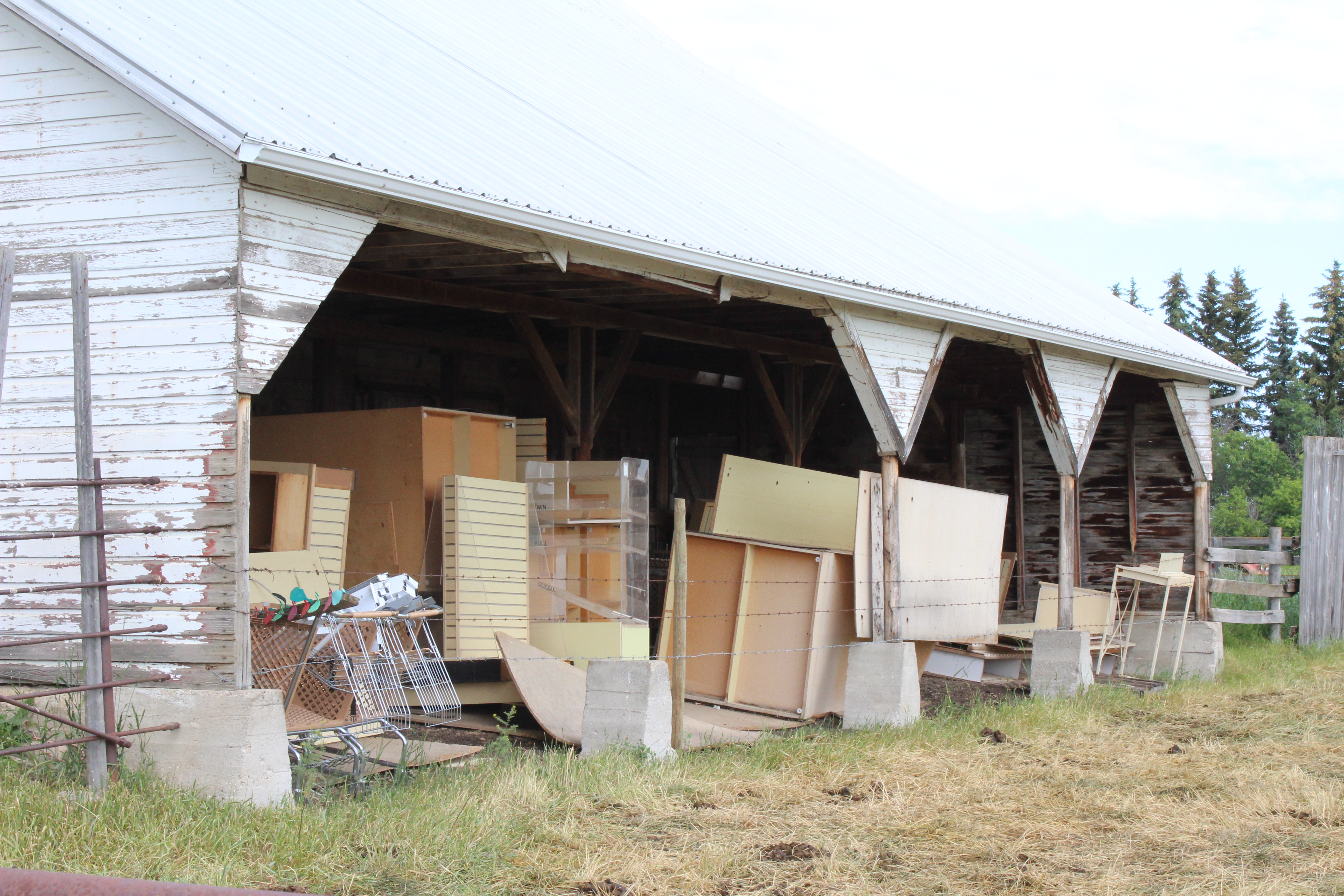 The east side of the barn used to look exactly like the west side. John Feddema had the east side adjusted so that he could feed cattle there. He removed some of the walls and stalls which created a parade of arches to form a shaded arcade on the east side.