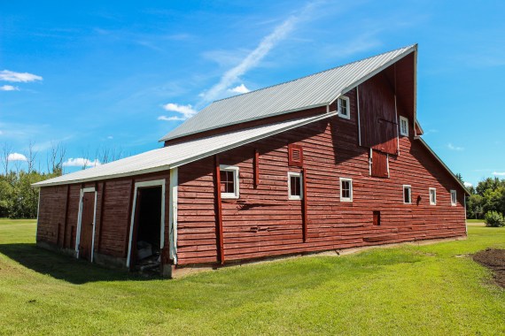 IMG_6142 Previous Next Published July 11, 2017 at 5184 × 3456 in Snethun The western face of the barn and the northern half of the roof are visible in this frame. The western face has two doors that would have been used to throw feed out of the loft to the ground below.