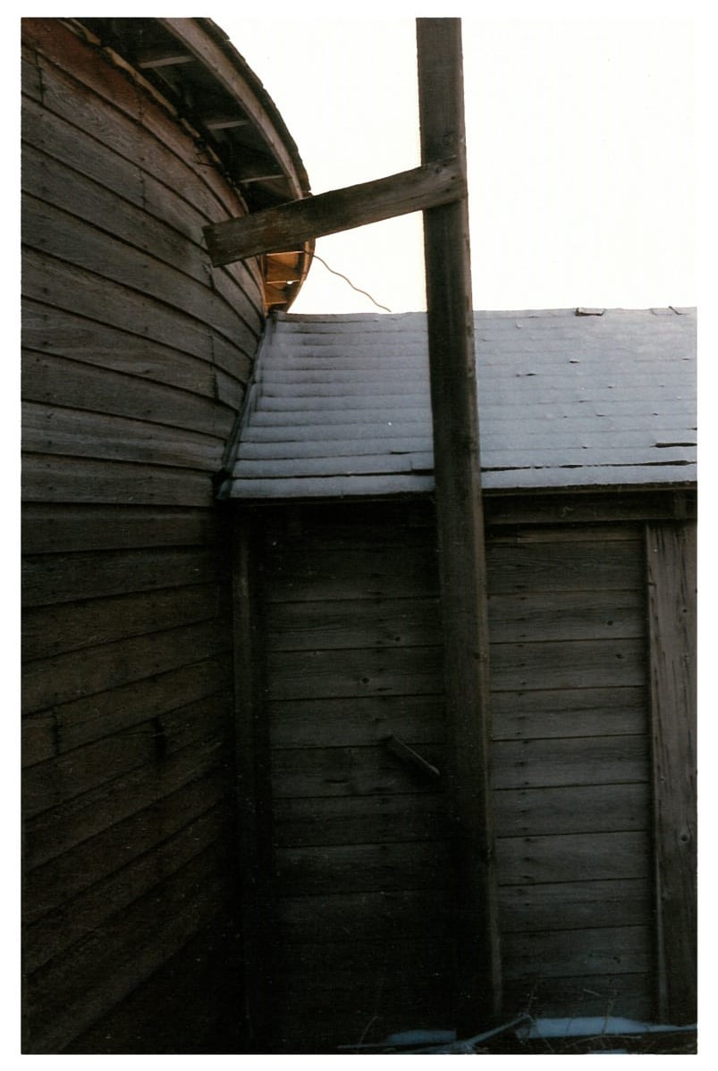 7 Previous Next Published May 5, 2017 at 803 × 1198 in Wise/Perreault/Voros This photo shows aspects of the main barn, the attached room, and the post that supports the beam that the loft doors slide on.