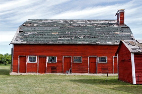 This photo is of the southern side of the barn. The doors on this side of the barn lead into stalls. By our best guess, the stalls would have originally been for horse because of the split doors. After the barn was moved here, it was most likely renovated for milk cows. Now, these doors lead into a walk-way in front of the milking stalls and stanchions.