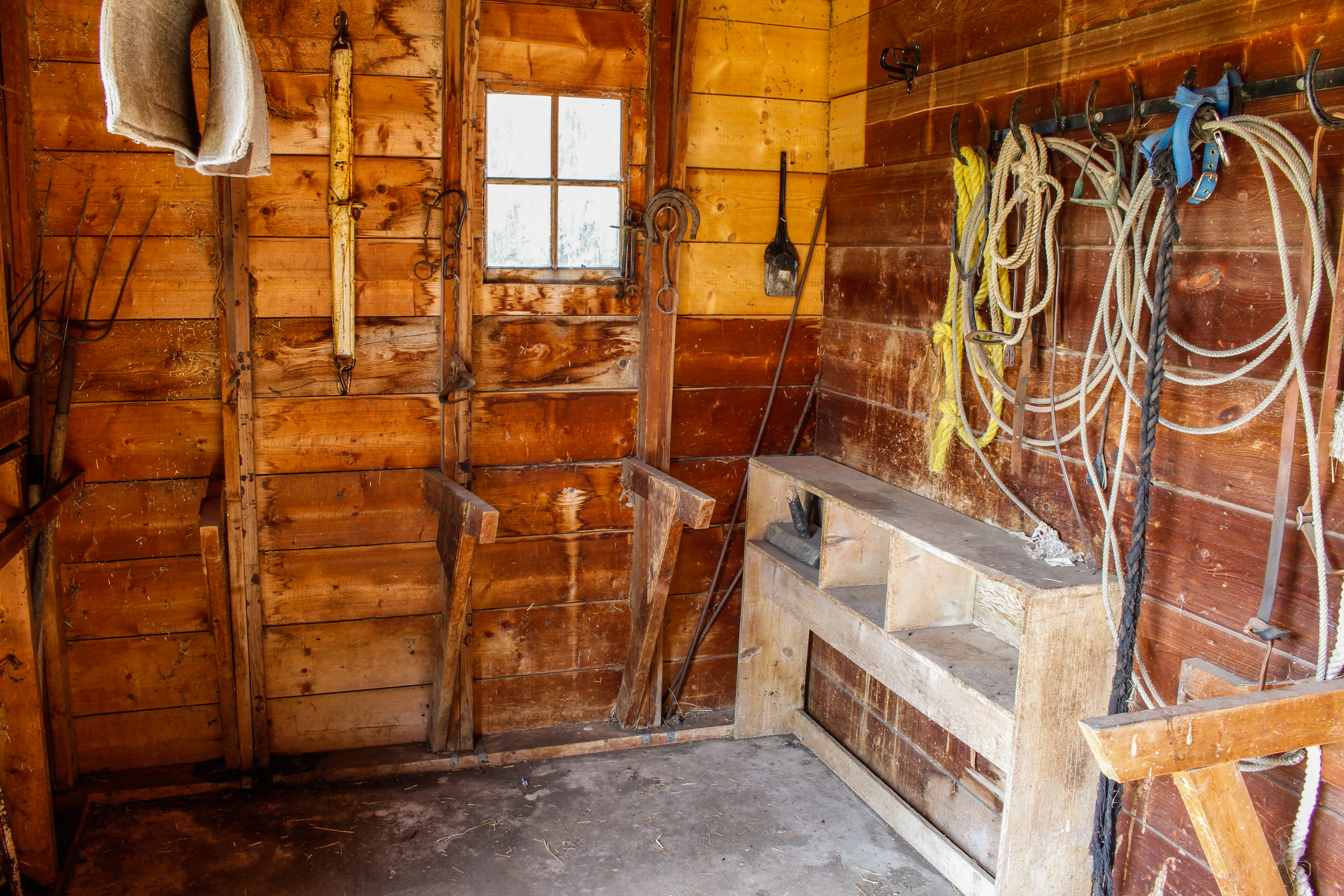 _MG_0707 Previous Next Published August 15, 2017 at 5184 × 3456 in Moser This frame shows the southern half of the western wall. This frame was taken whilst standing in the doorway on the southern end of the barn. Notice the stands for saddles on the western wall.