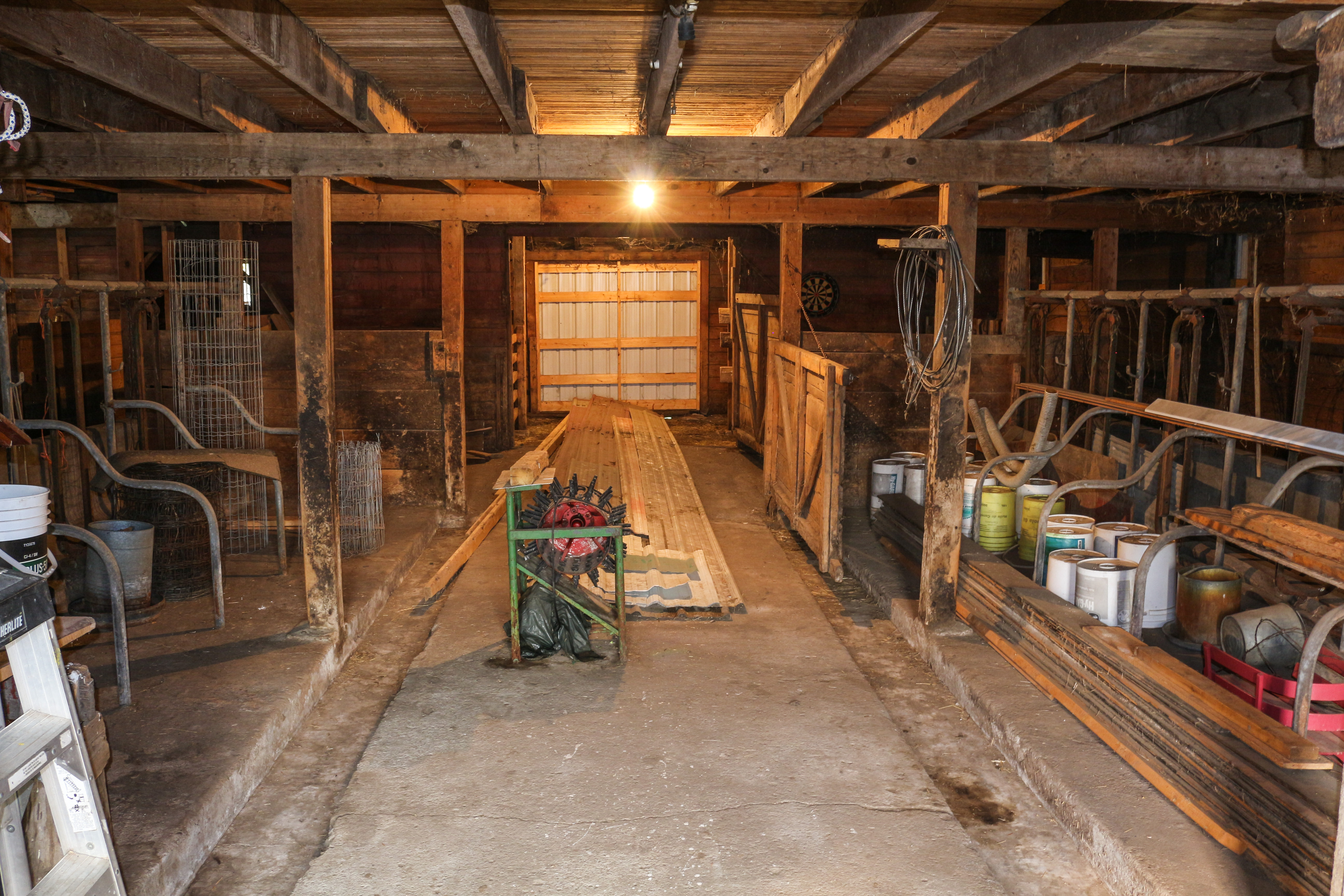 IMG_0060 Previous Next Published August 31, 2017 at 5184 × 3456 in Bendfeld This frame shows the east-west walk-way in the milking area of the barn. The closed door-way in the background of this frame is on the western side of the barn in the shed addition. The shed addition was used to feed cows.