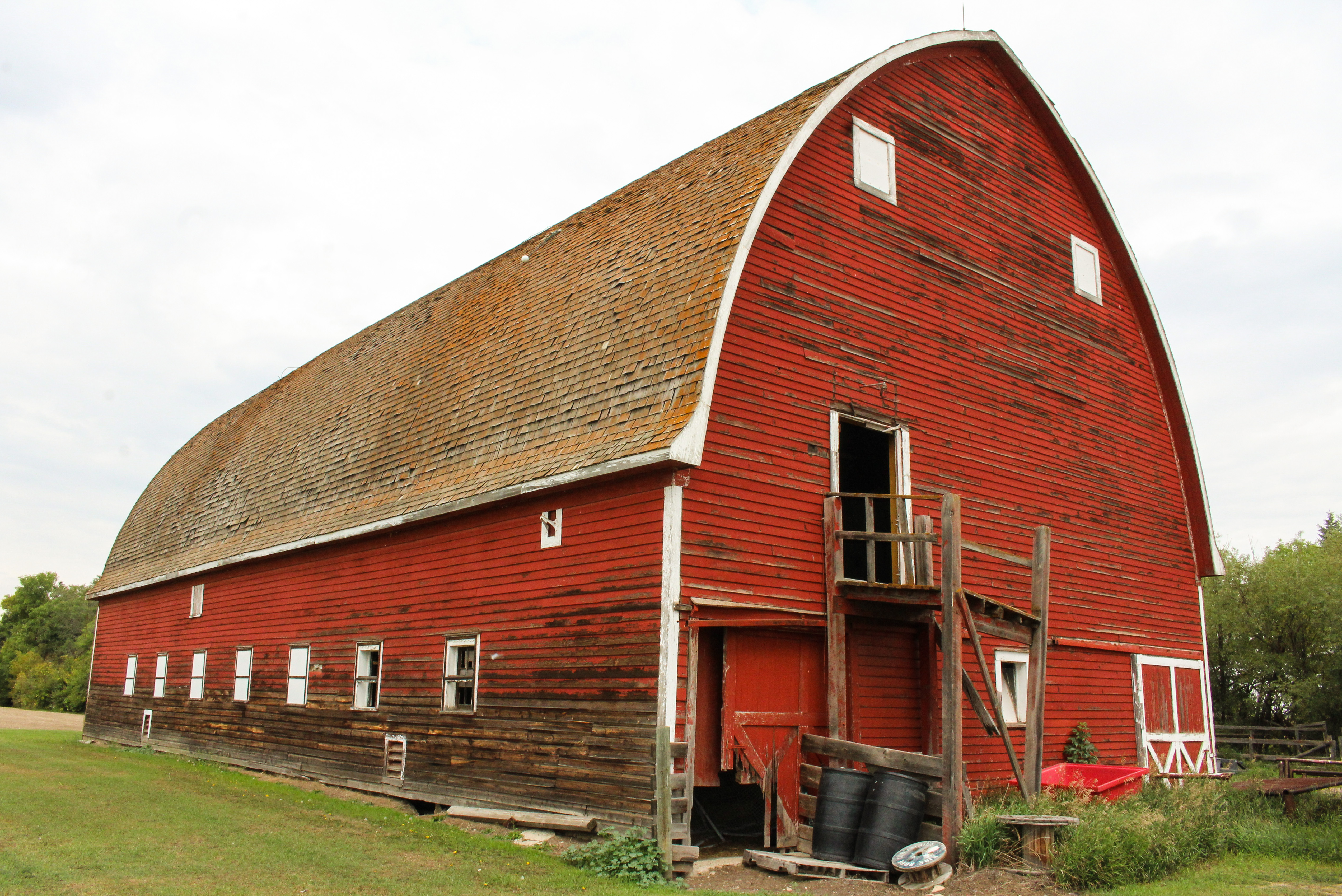 IMG_2541 Previous Next Published August 29, 2018 at 5081 × 3392 in Coldstream Barn/George This frame shows the eastern face and southern side of the barn. Note the partially collapsed staircase.